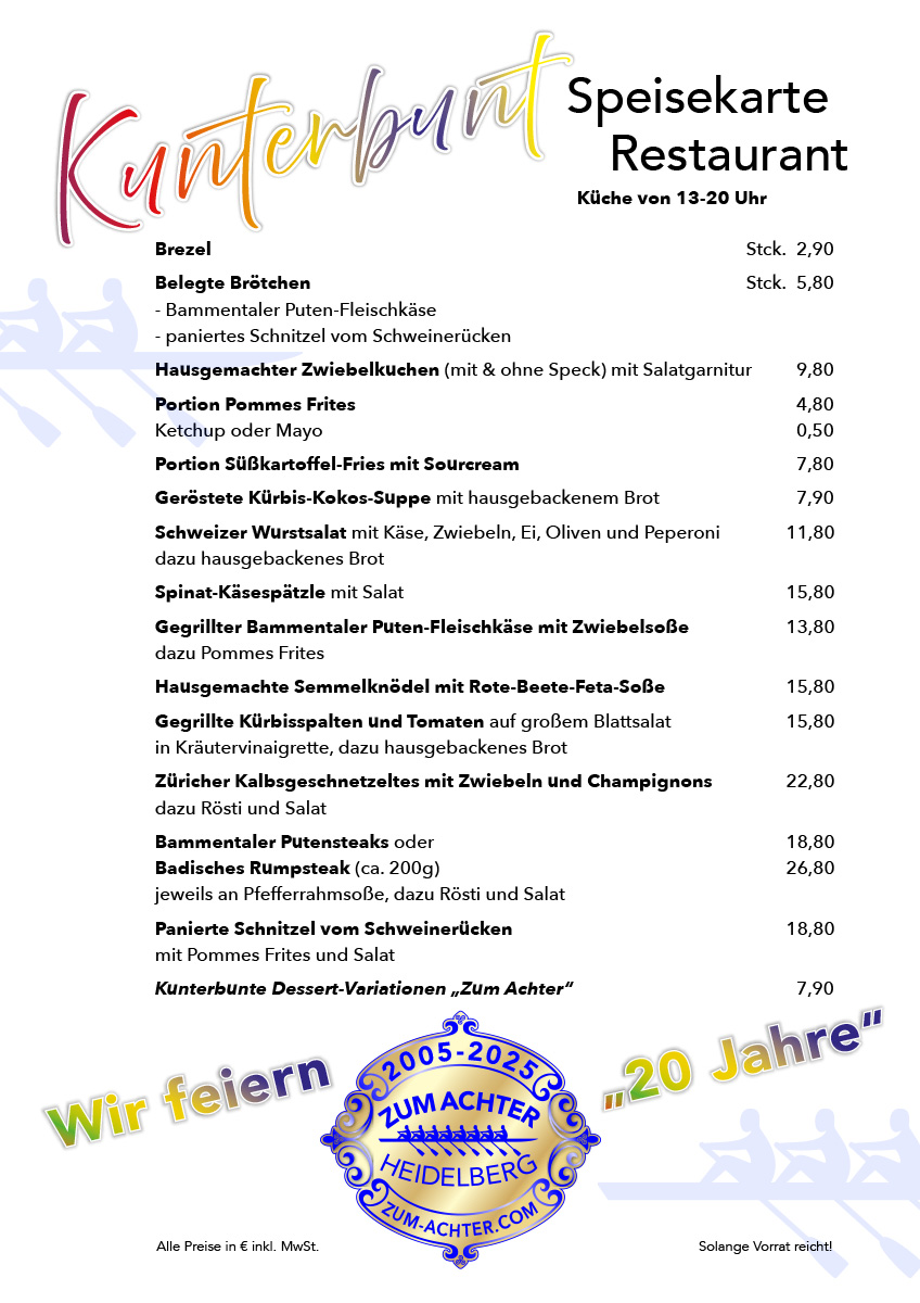 Auftraggeber|Kunde: Zum Achter, Restaurant, Heidelberg | Projekt: Diverses wie Flyer, Plakate, Speisekarte, etc. | Leistungen: Creative/Art Direction